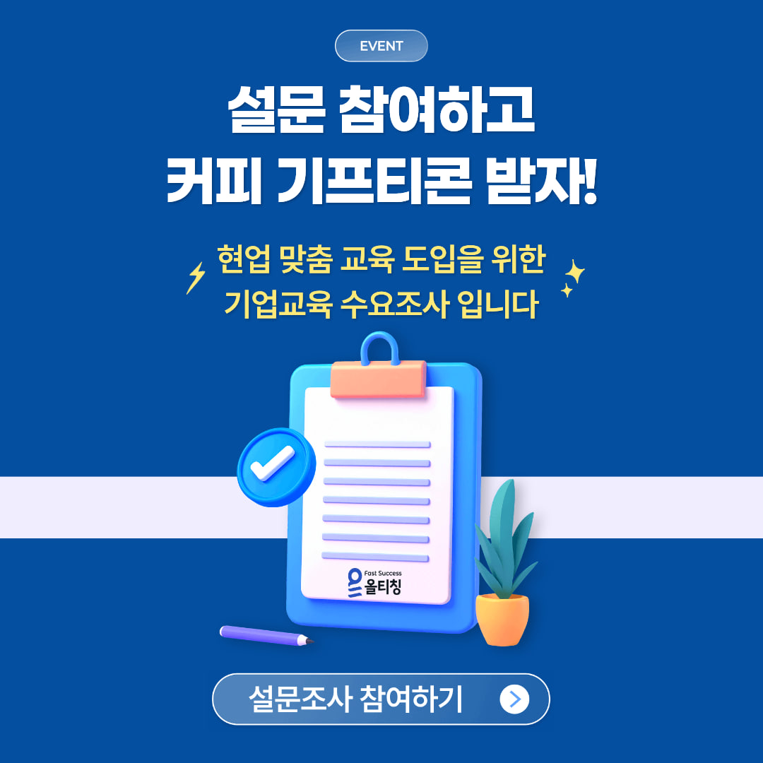 사업주 및 교육담당자분들을 대상으로 2026년도 기업 직무교육 수요조사를 진행하고 있습니다.